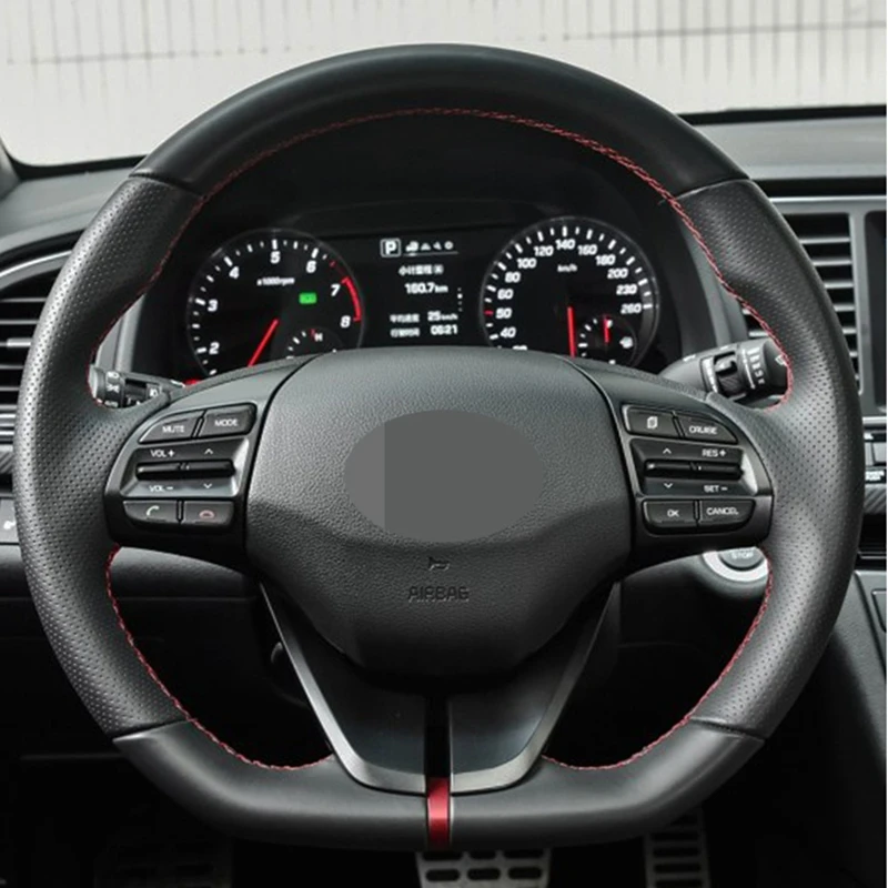 DIY черный чехол рулевого колеса автомобиля из натуральной кожи для...