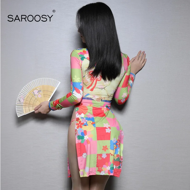 Женское Эротическое платье SAROOSY, прозрачное эластичное мини-платье с высоким вырезом и цветами вишни, Новое поступление