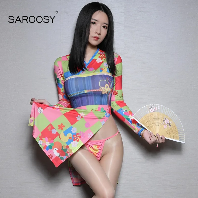 Пикантное аниме платье SAROOSY для женщин с цветами вишни, высокоэл...