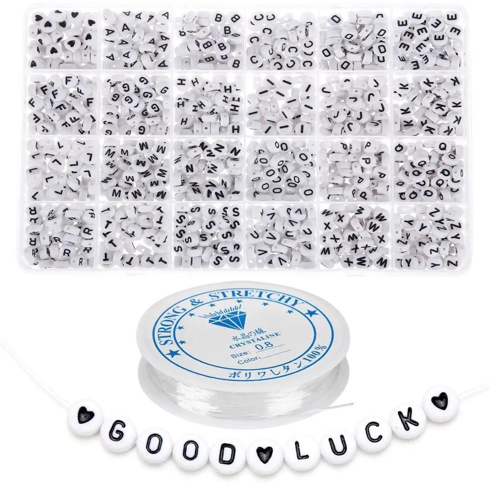 1200 шт. акриловые бусины с буквами белые круглые бусины с буквами ...