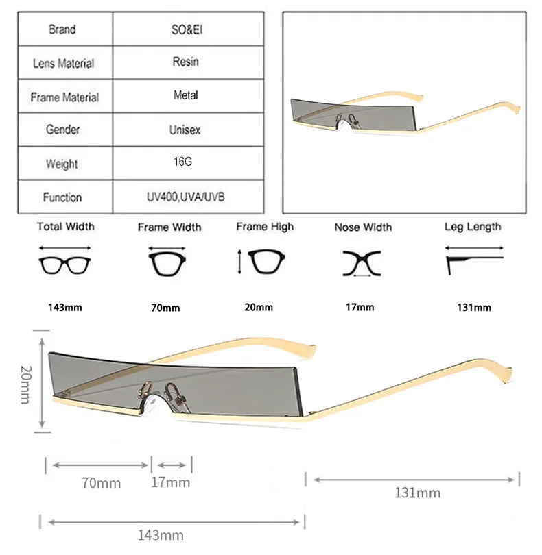 Женские солнцезащитные очки без оправы SO EI, винтажные прямоугольные брендовые дизайнерские очки с прозрачными океанскими линзами, женские солнцезащитные очки UV400