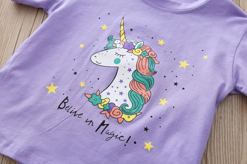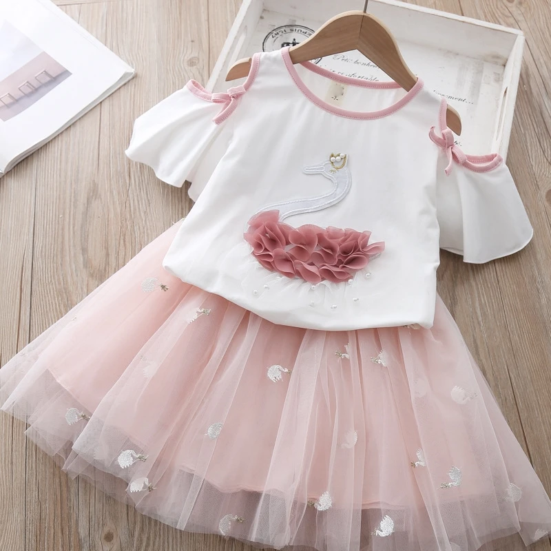 Платье для девочек, летнее, детское, праздничное, с вышивкой белого лебедя, единорога, костюм для маленьких девочек, Милая футболка и платье, костюм