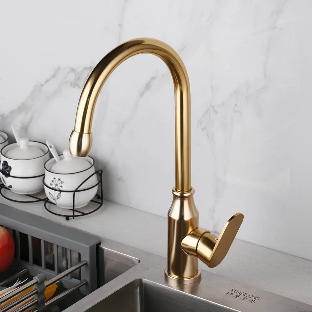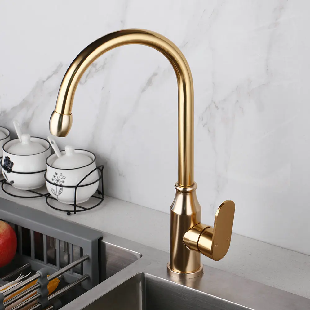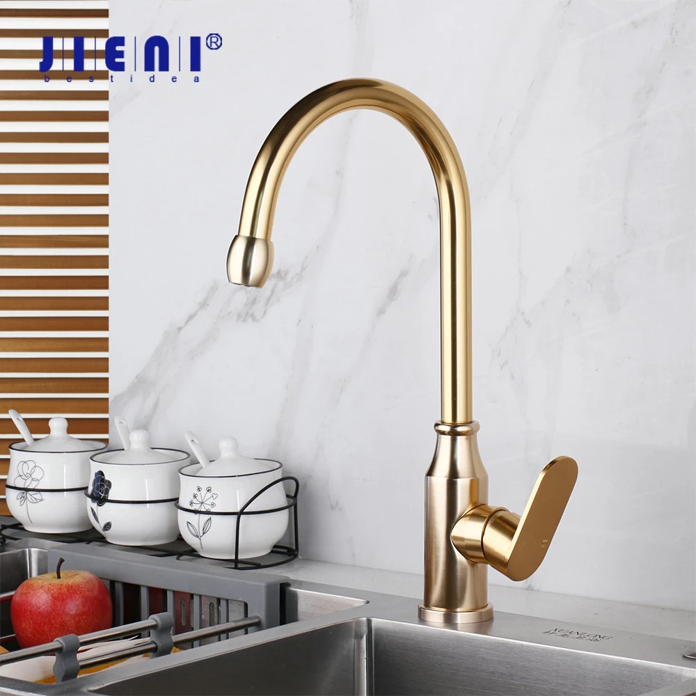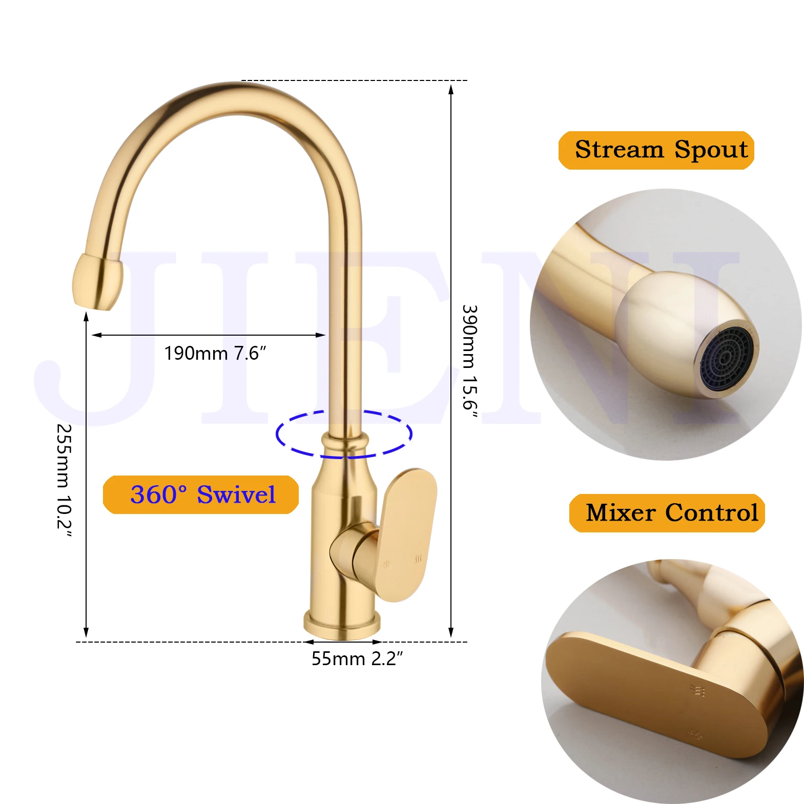 Поворотный позолоченный кухонный кран JIENI 360, позолоченный Поворотный кухонный кран, полированный кран с одной ручкой, смеситель для раковины
