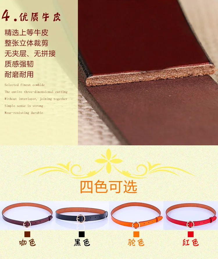 Новинка 2020, стильный женский ремень из натуральной воловьей кожи в стиле ретро, гладкий, роскошный подарок, тонкие ковбойские брюки оранжевого, красного, черного цветов