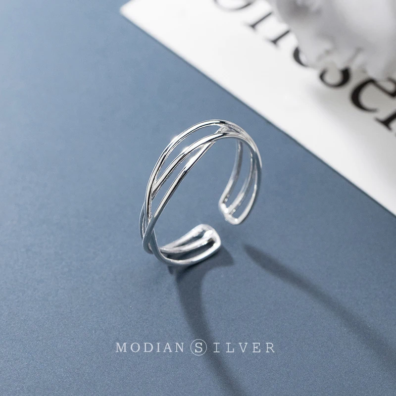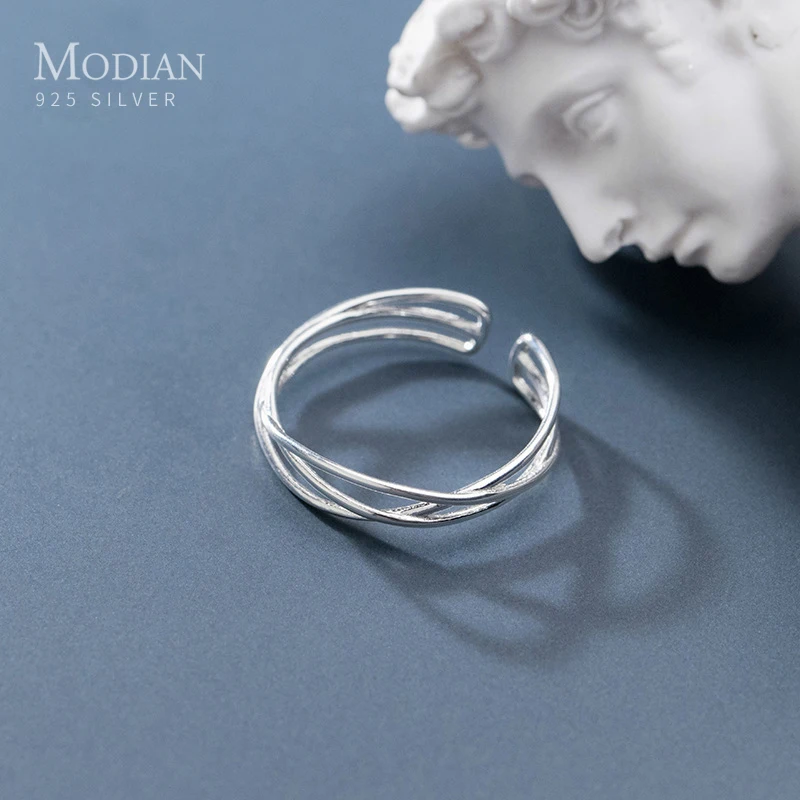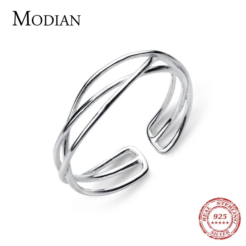 Кольцо Modian трехслойное женское, открытое трехслойное кольцо из настоящего серебра 925 пробы, изящная бижутерия