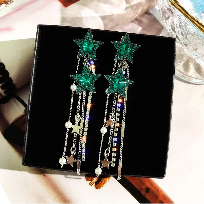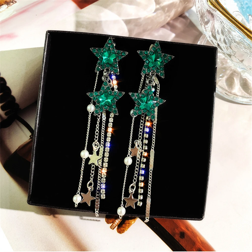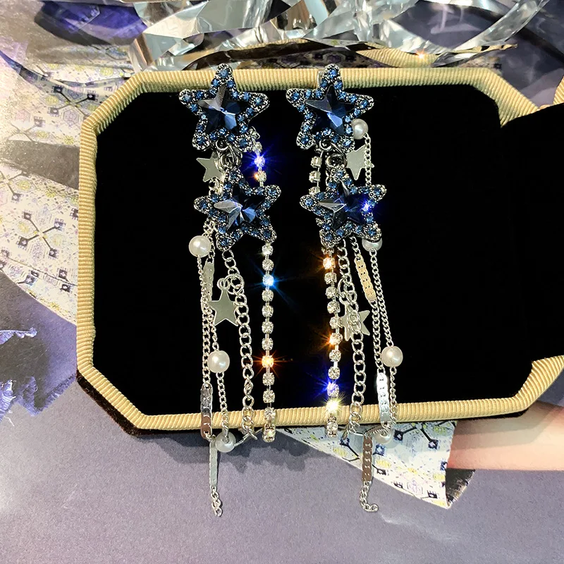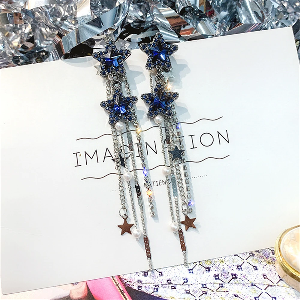 Серьги-подвески в Корейском стиле женские, висячие украшения с синими кристаллами и длинной кисточкой, ювелирные изделия, аксессуары