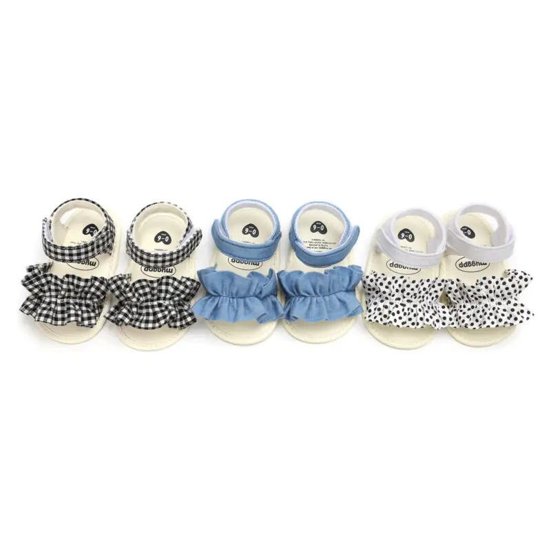 Сандалии для маленьких девочек 0-18 месяцев, мягкая подошва, с бантом, в клетку, в полоску, Цветочные Вечерние ринки, пляжная обувь принцессы, летняя одежда для малышей