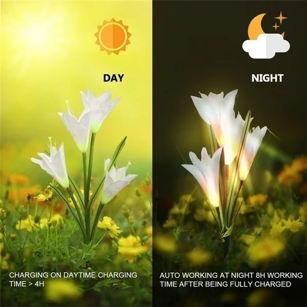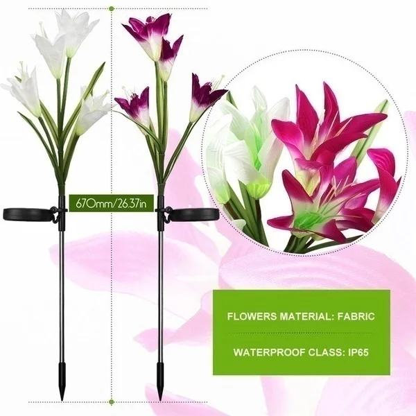 7 цветов, меняющие цвет лилии, солнечные светильники для улицы с яркими цветами лилии, приспособляют ваш сад. Прочная стойка из нержавеющей стали и высококачественная водонепроницаемость, которые обеспечивают нормальную зарядку солнечных цветочных огней после шторма и дождя. Светильники в виде цветов на солнечной батарее сделают вашу семейную вечеринку, вечеринку друзей, танцевальную вечевечерние, вечевечерние в честь Дня Рождения более ослепительной! И проведите каждую чудесную ночь с собой!
