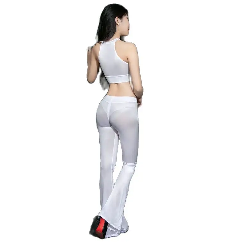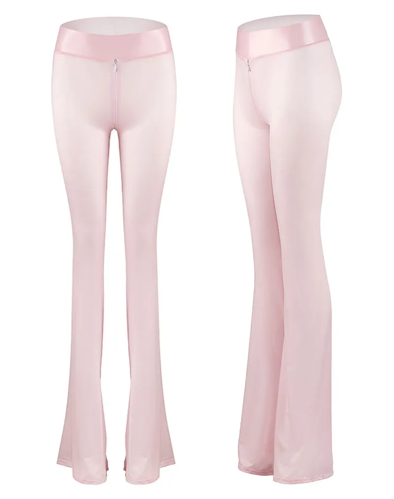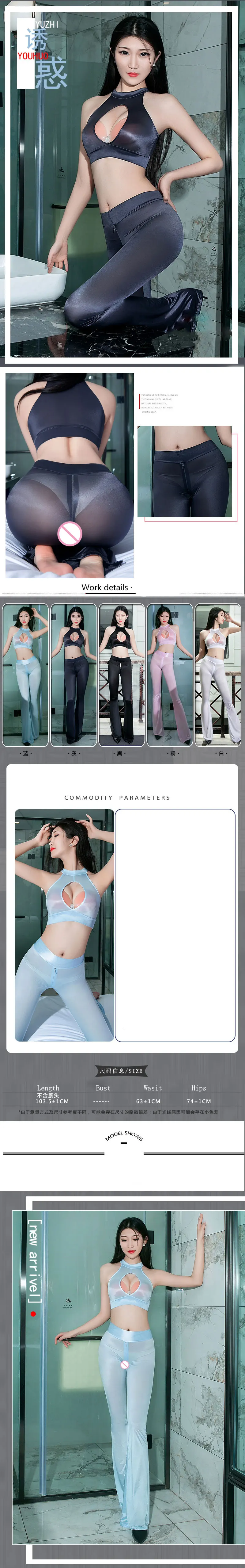 Сексуальные блестящие расклешенные штаны на молнии с открытой промежностью, леггинсы без пятен, Гладкие сексуальные Капри с бедрами, прозрачные сексуальные штаны F20