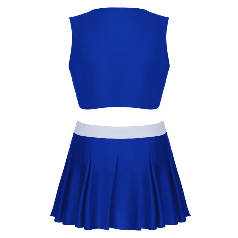 Женский очаровательный комплект униформы для болельщиц из 2 предметов, укороченный топ без рукавов с круглым вырезом и мини-плиссированная юбка, игровой спортивный костюм