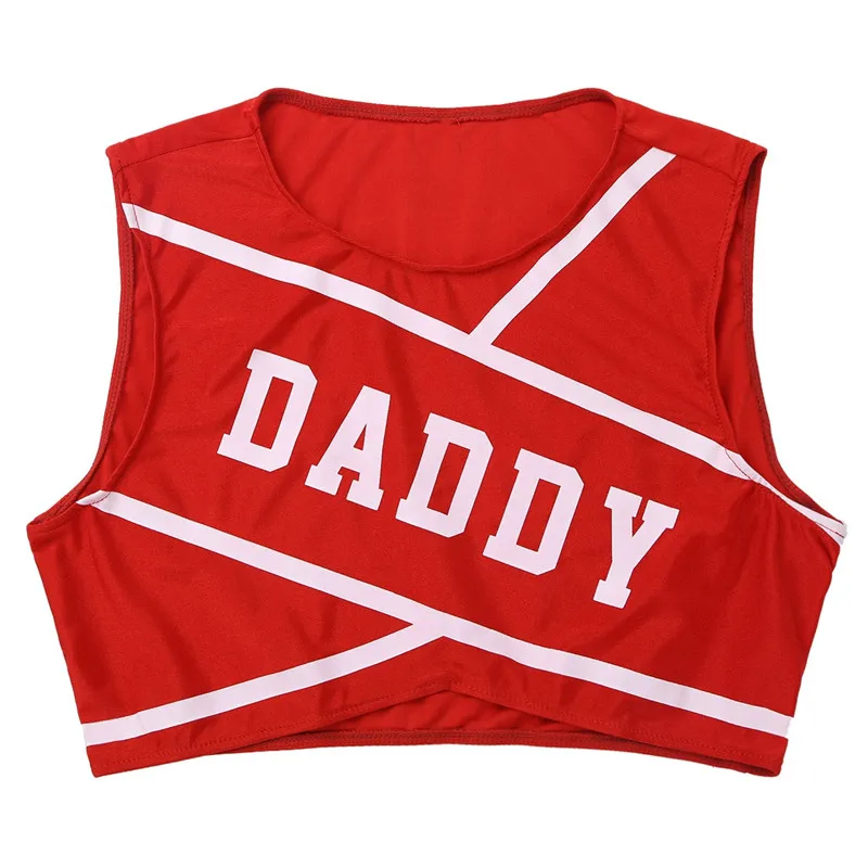 Особенности:Женский очаровательный костюм Чирлидера для косплея, комплект униформы, застежка на пуговицах.Укороченный топ без рукавов с круглым вырезом и надписью «DADDY» спереди, подходящая к эластичной мини-плиссированной юбке.Хорошая эластичная ткань, мягкая и удобная в носке, отлично покажет вашу очаровательность вечерние ринке или занятиях спортом.Хороший выбор для наряда, ролевых игр, сценических костюмов, карнавала, танцевальной одежды, танцевальных соревнований и т. д.Пожалуйста, обратитесь к описанию продукта для получения подробной информации о размере. Ручная стирка в холодной воде.