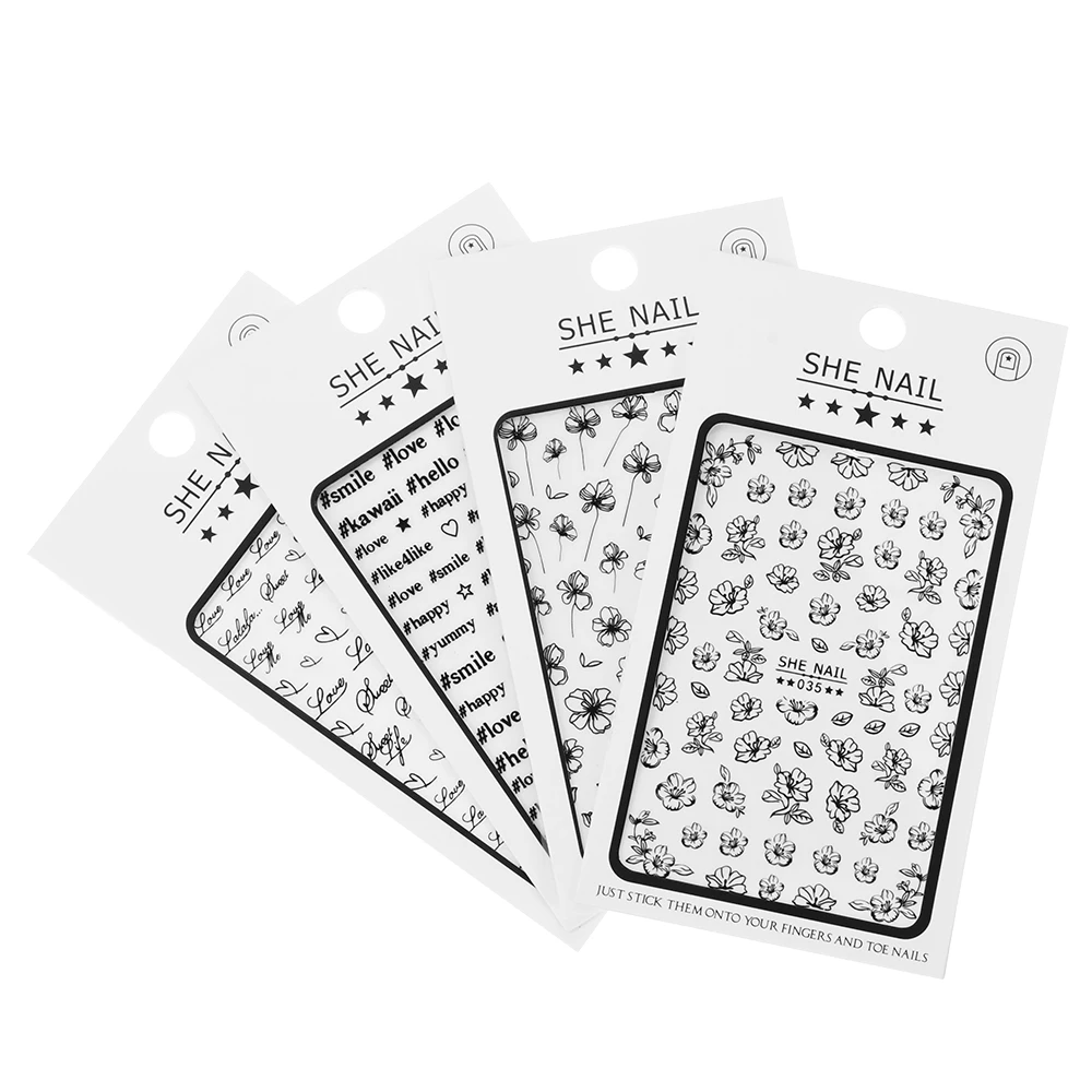 Новинка, черно-белая Золотая 3D наклейка для дизайна ногтей, наклей...