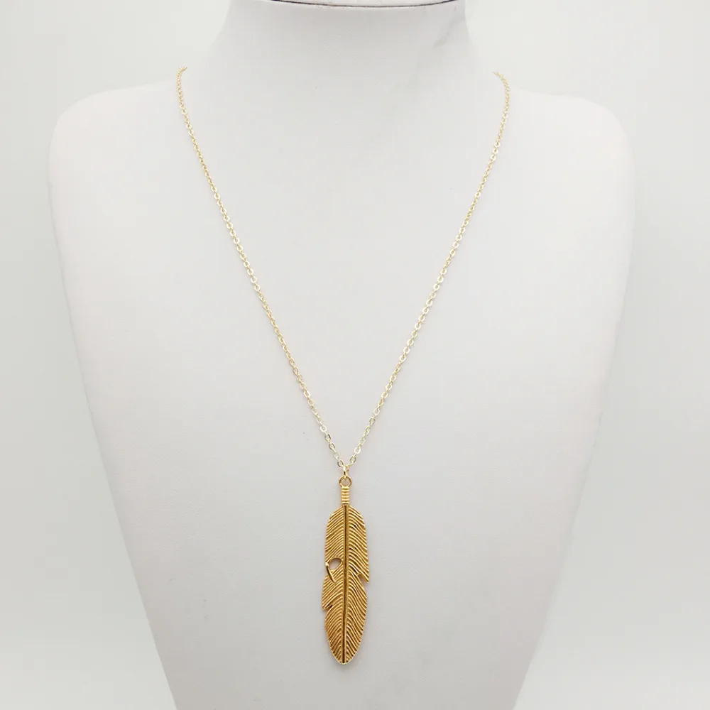 Простое винтажное ожерелье с подвеской в виде пера, длинная цепочка...