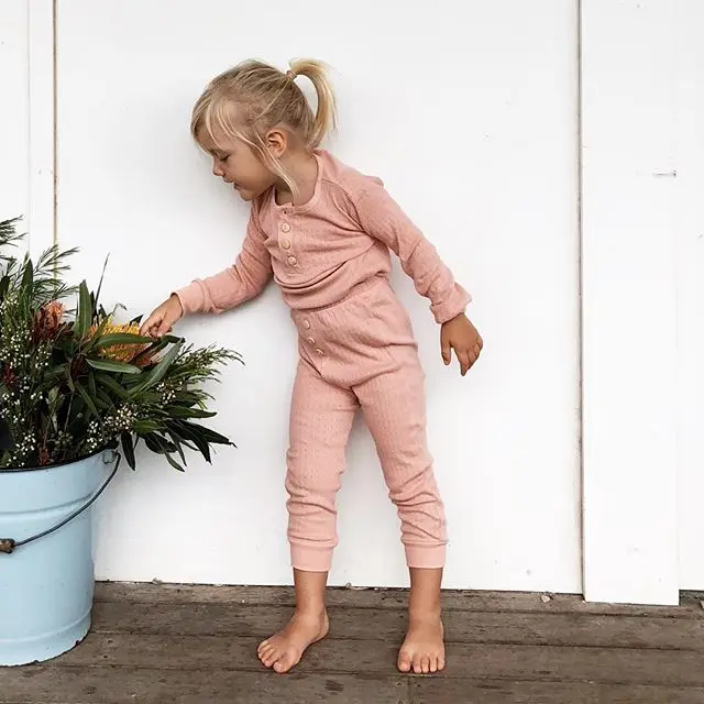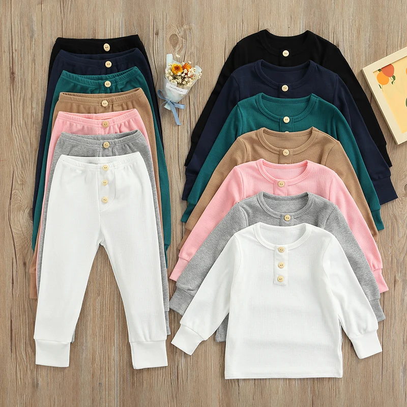 От 1 до 6 лет г., хлопковый однотонный пижамный комплект для малень...