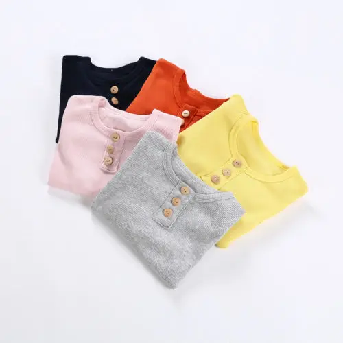 Однотонная футболка с длинным рукавом для маленьких мальчиков и дев...