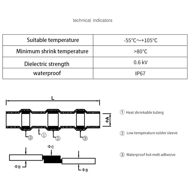 50 шт. термоусадочный соединитель, электрическая трубка для пайки, изолированный провод, водонепроницаемый, быстрый стыковой наконечник, комплект