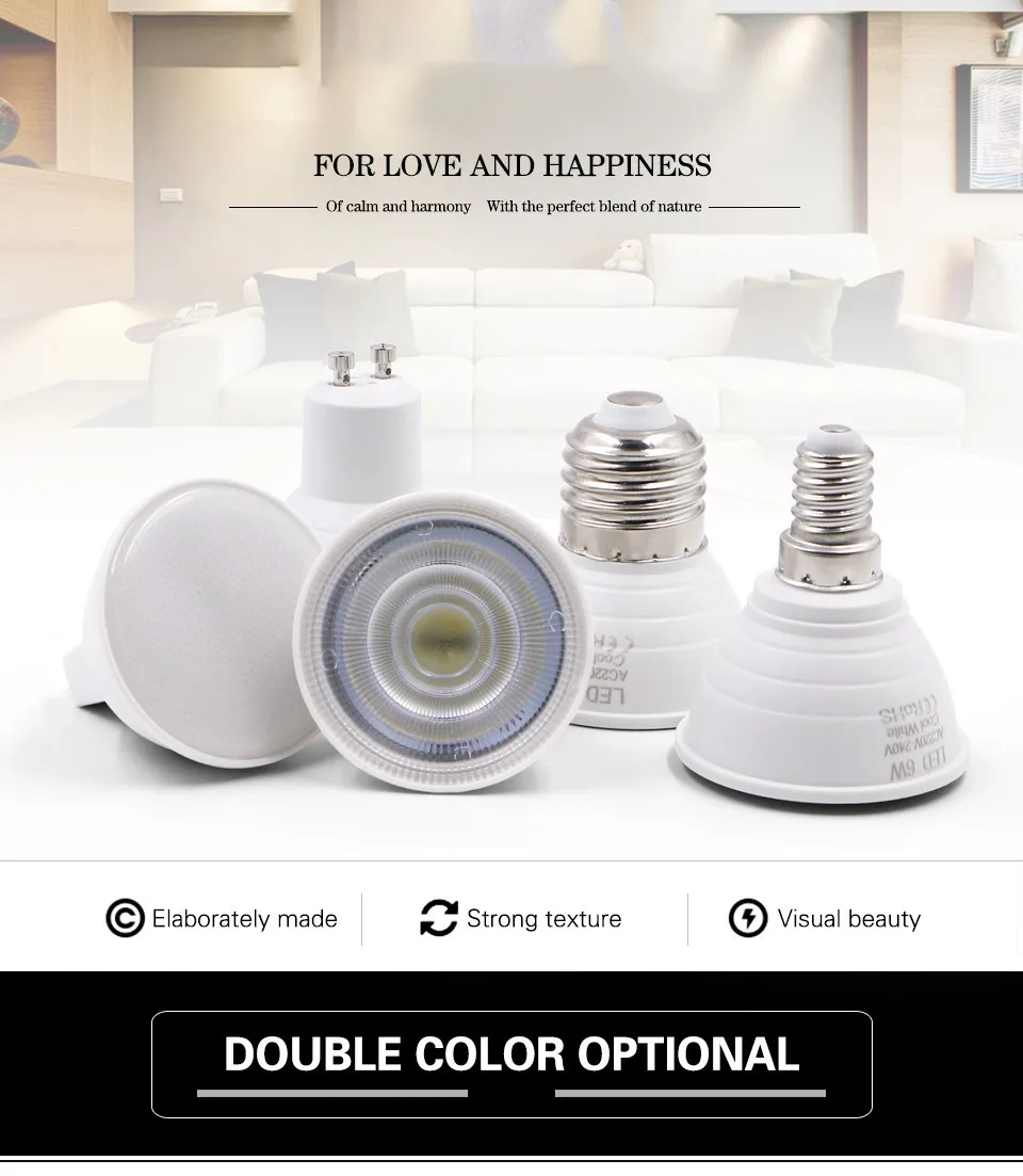 Характеристика:Чип высокой яркости SMD2835.CRI 80 +, широкий угол луча, может обеспечить яркое освещение в широком диапазоне. Длительный срок службы уменьшает частоту замены лампы.Приложения включают Семейные гостиные, кухни, витрины магазинов, витрины, студии и другое Внутреннее освещение.Спецификация:Название продукта: светодиодный прожекторОсновной тип: GU10 / MR16 / E27 / E14Мощность: 6 ВтЛюмен: 480-520LMCRI: 80Напряжение: 220-240 В переменного токаСветодиодный Тип: SMD 2835Угол луча: 24 угла/120 углаМатериал: ПК + алюминийЦвет и температура: теплый белый (2800-3200K) /холодный белый (6000-6500K)