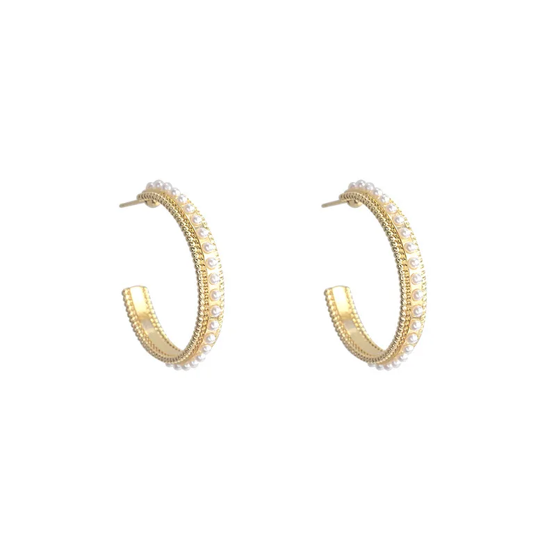 Серьги-гвоздики в евро-американском стиле с имитацией жемчуга и моз...