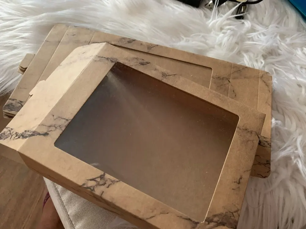 10 шт. большая бумажная коробка с окном DIY крафт-дизайн marbling спасибо Цветочный Стиль Подарочная коробка торт домашние вечерние свадебные упаковки