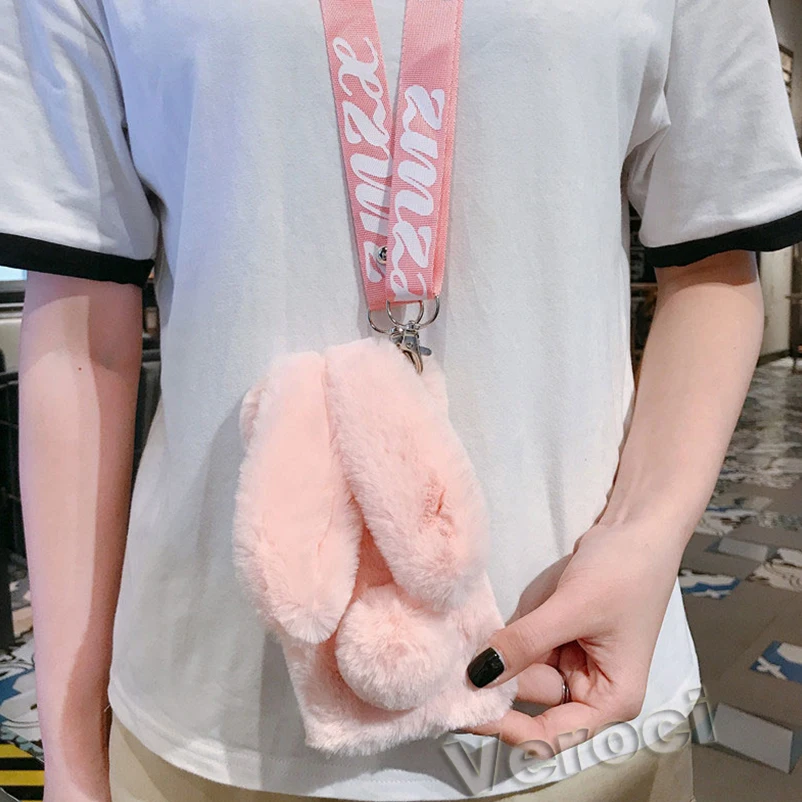 Характеристикиcute 3d rabbit ears fur case with crossbody strap
