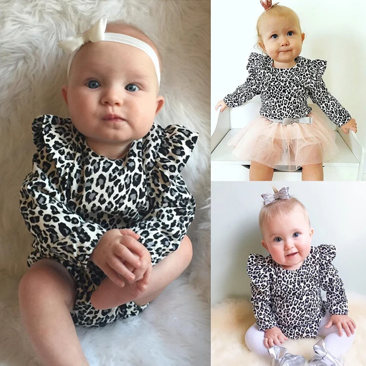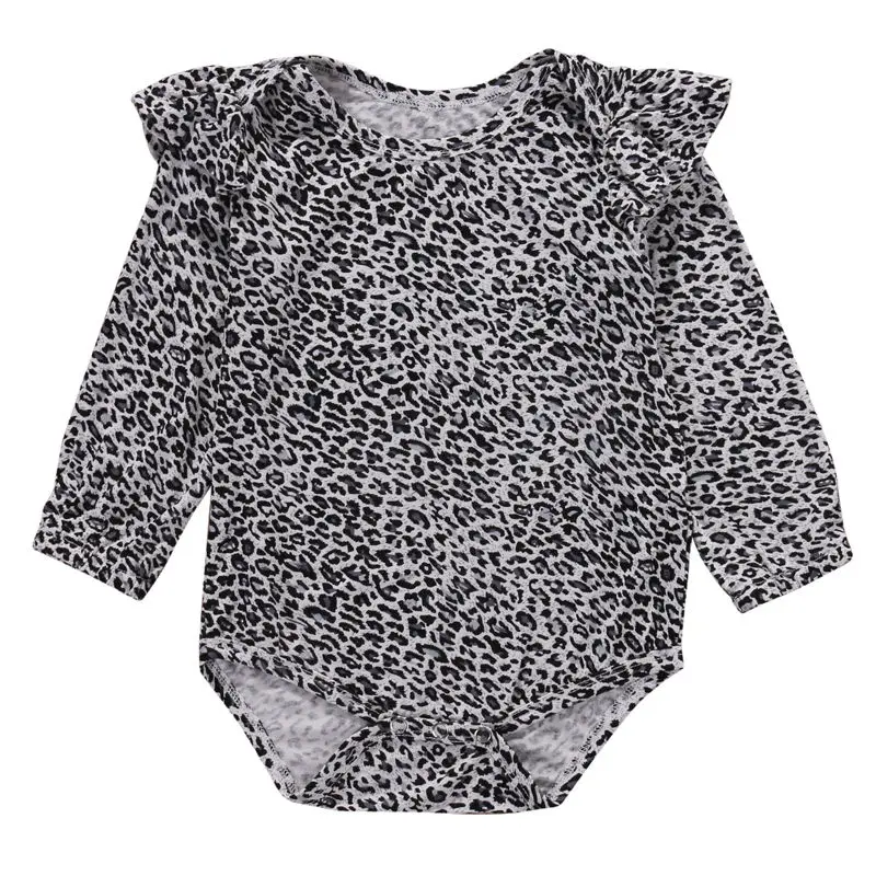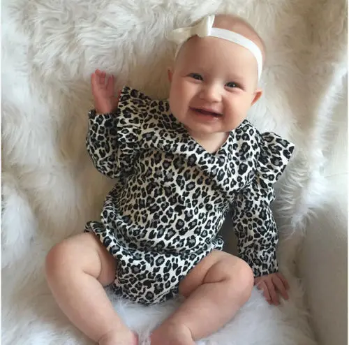 Комбинезон с длинными рукавами и леопардовым принтом для новорожденных и маленьких девочек, комбинезон, повседневная одежда, одежда для детей 0-24 месяцев, бесплатная доставка