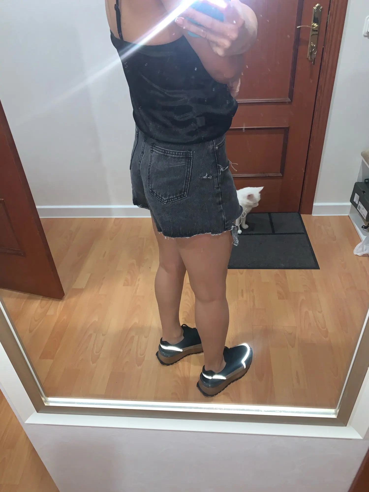 шорты очень классные! Плотный деним, сидят хорошо. Посадка высокая. На рос 46 размер L сели отлично