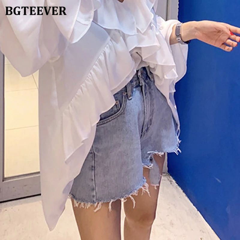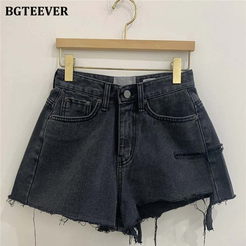 Джинсовые шорты BGTEEVER женские, летние, с высокой талией, трапециевидные, с рваными дырками и кисточками, уличная одежда