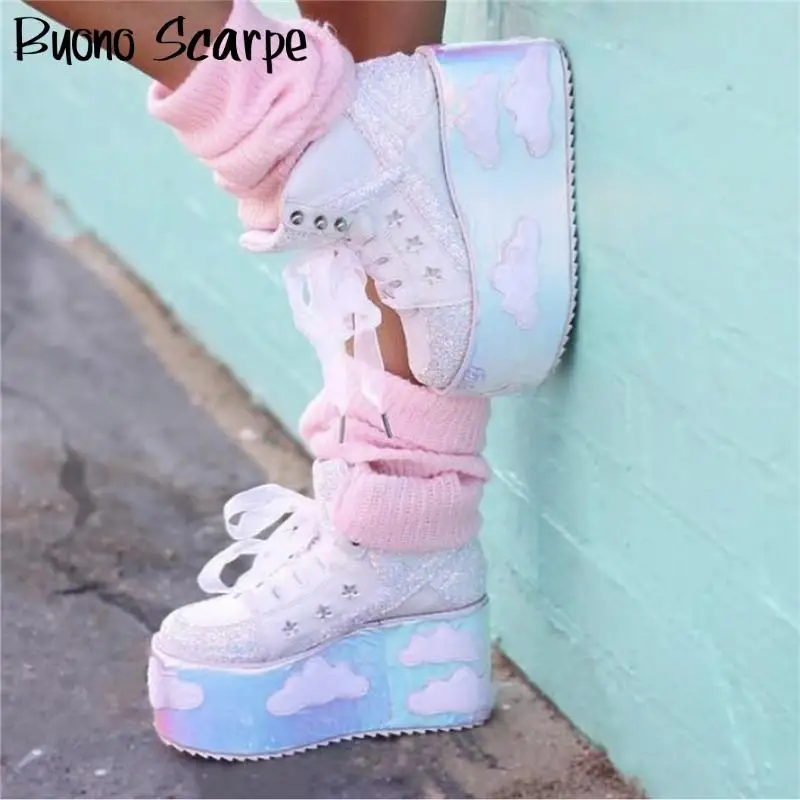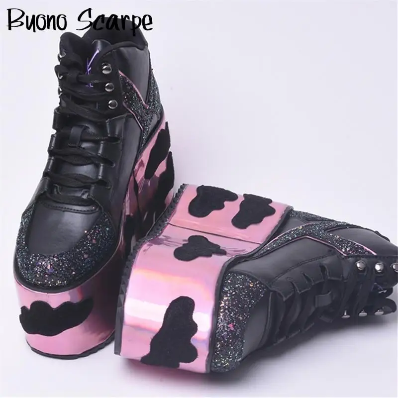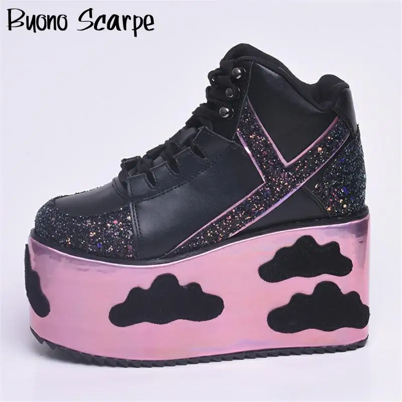 Женские кроссовки на высокой платформе, блестящие туфли на танкетке с блестками, Повседневная Уличная обувь на высокой платформе