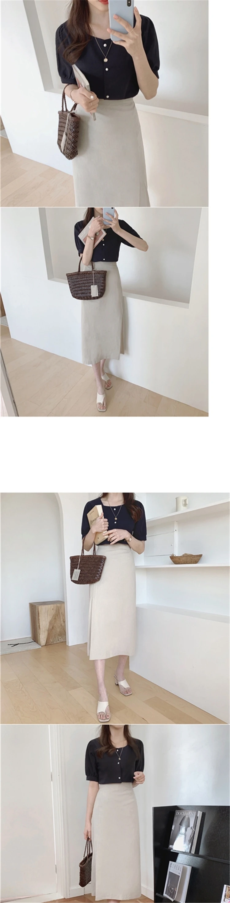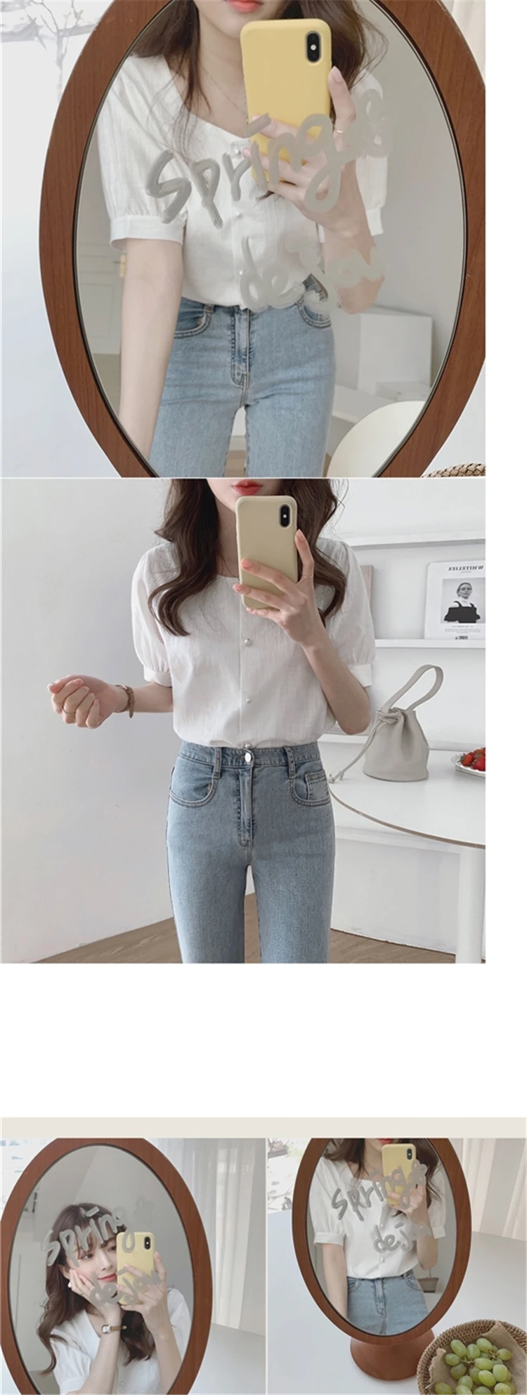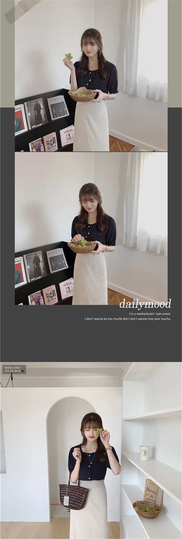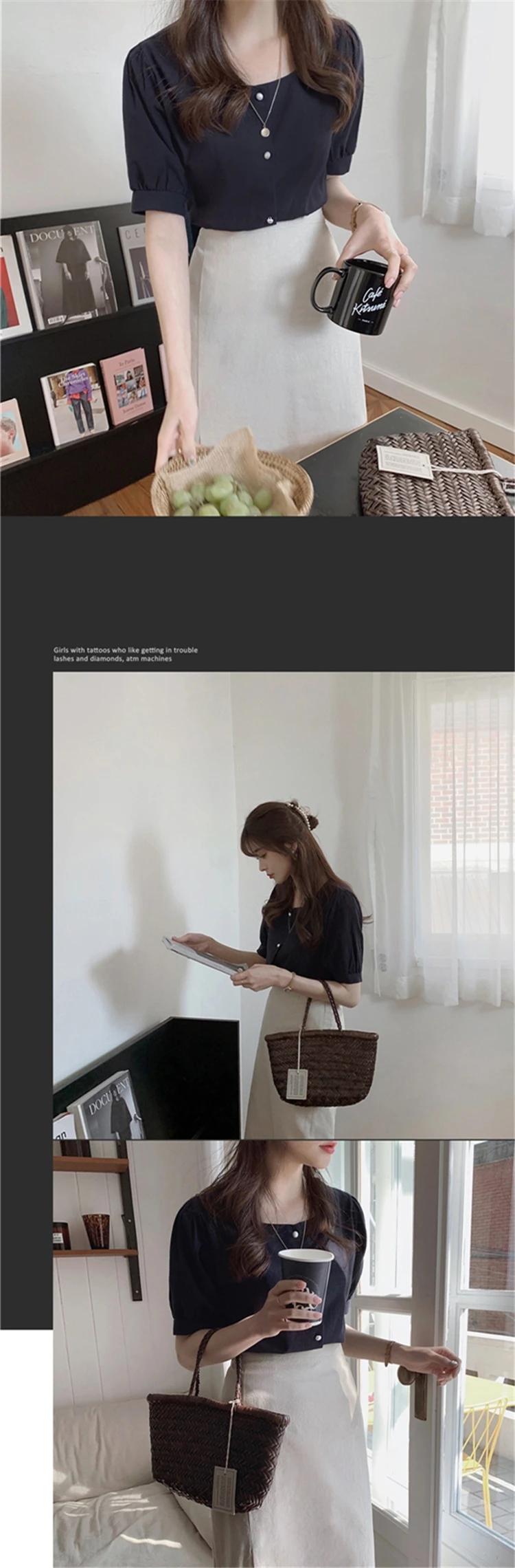Блузка женская однобортная, с квадратным вырезом и пышными рукавами, лето 2021