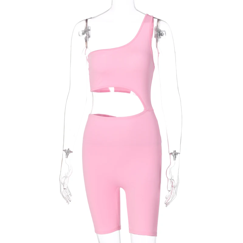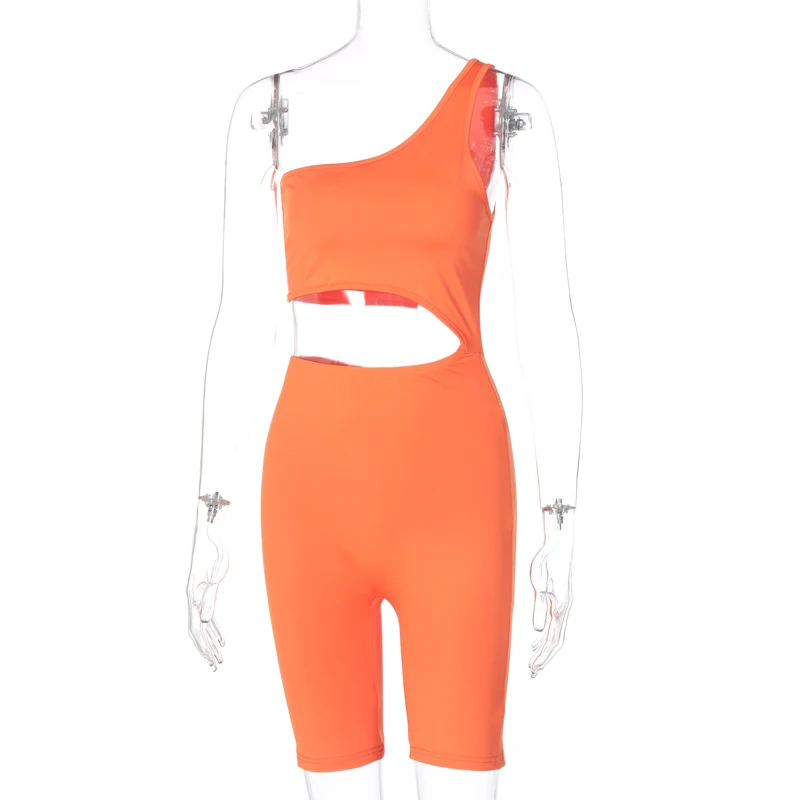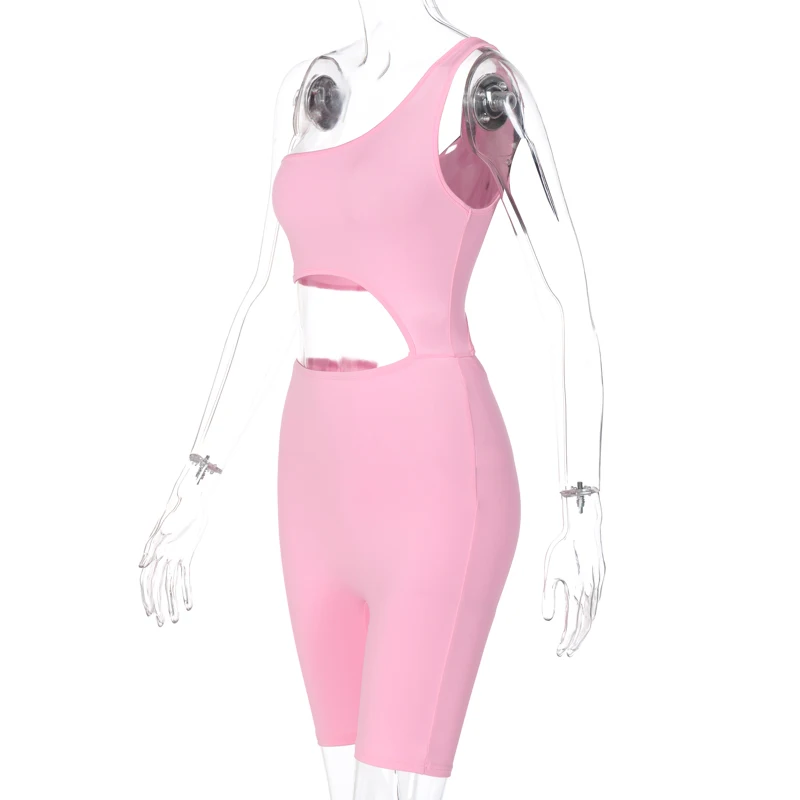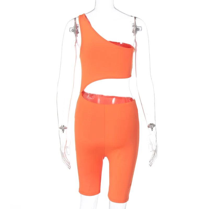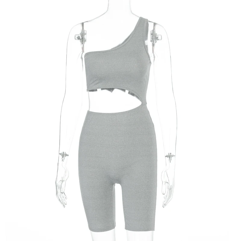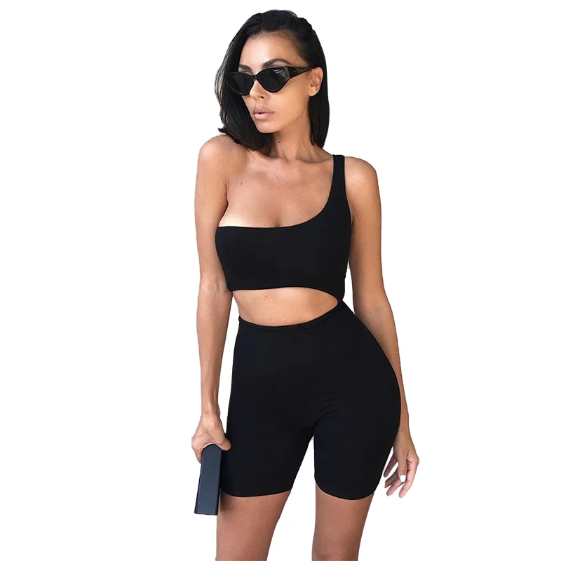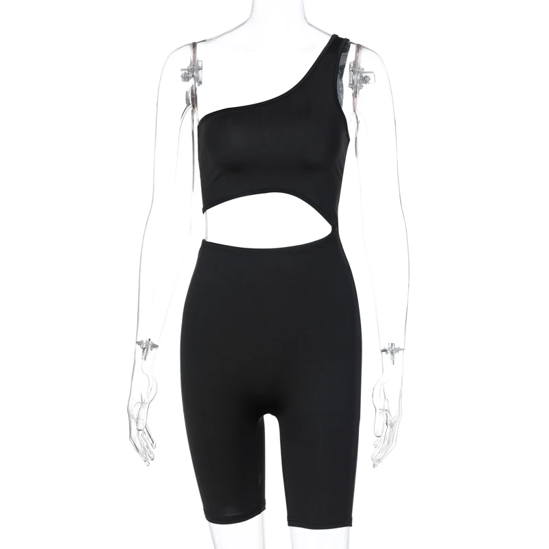 Комбинезон Hugcitar Женский на одно плечо, пикантный облегающий Ромпер без рукавов, модная уличная одежда, однотонный Ромпер, лето 2020