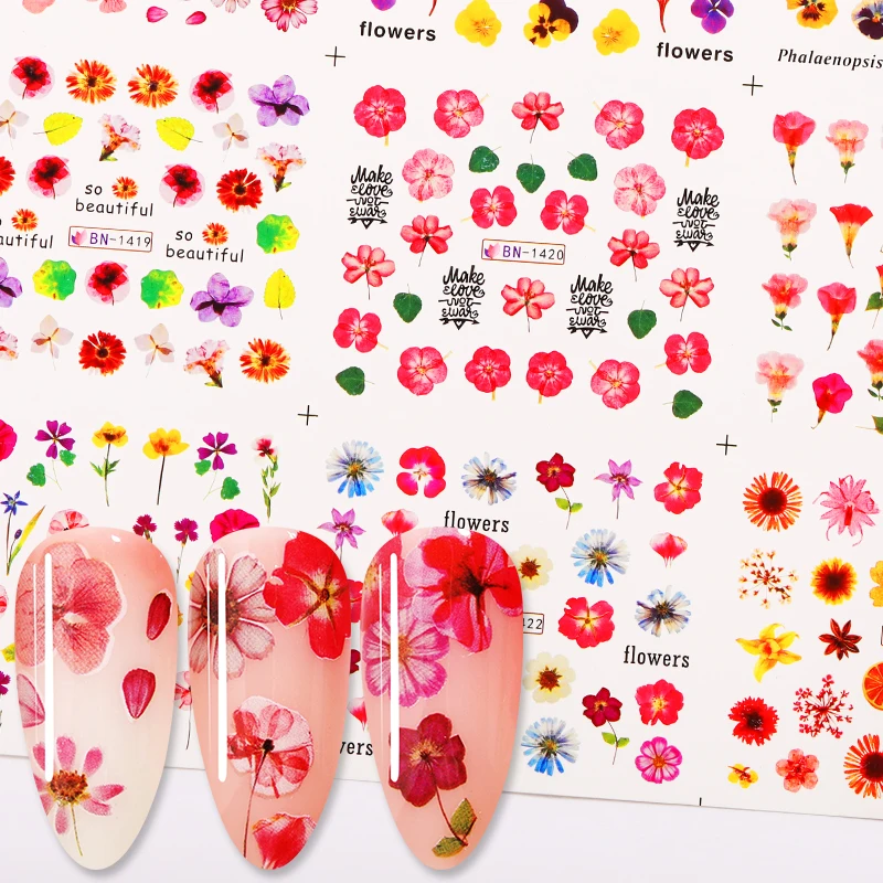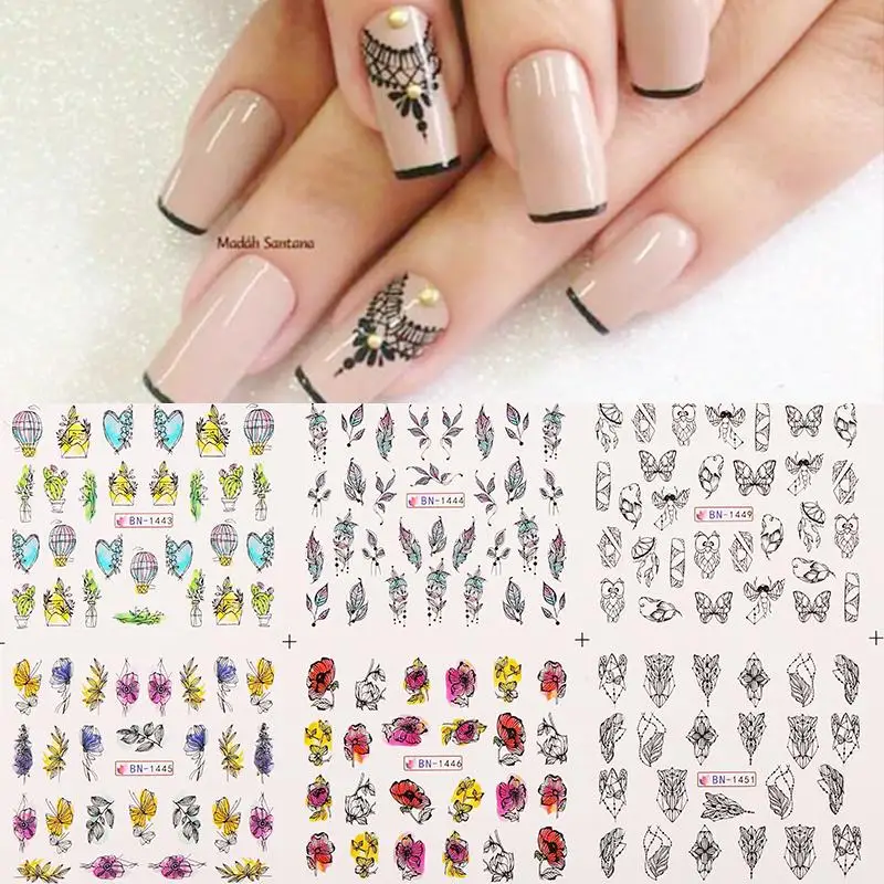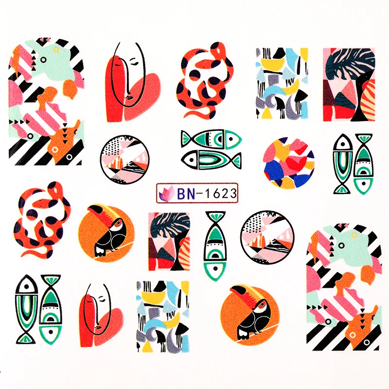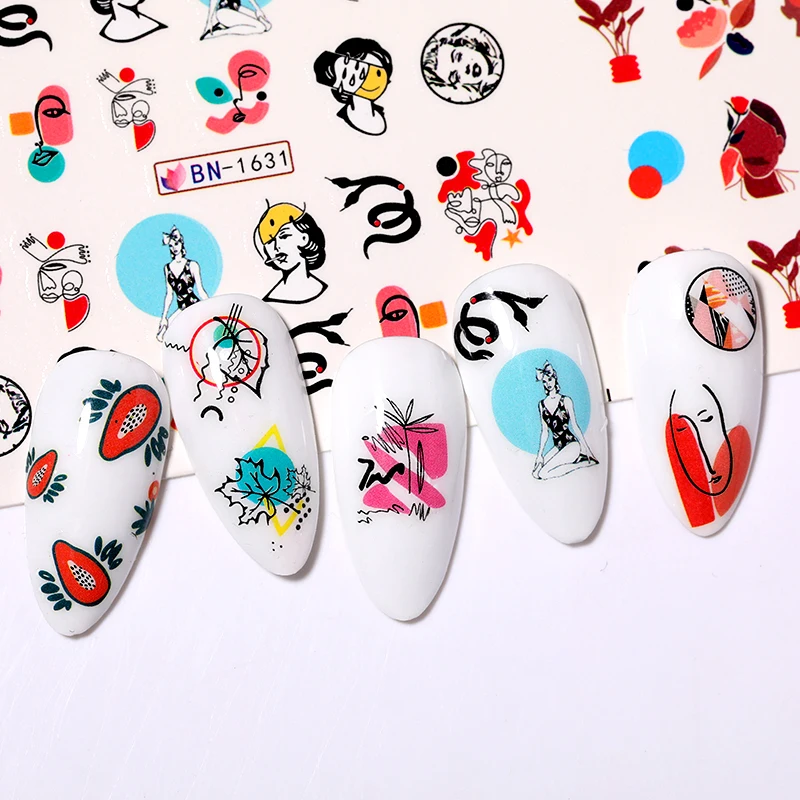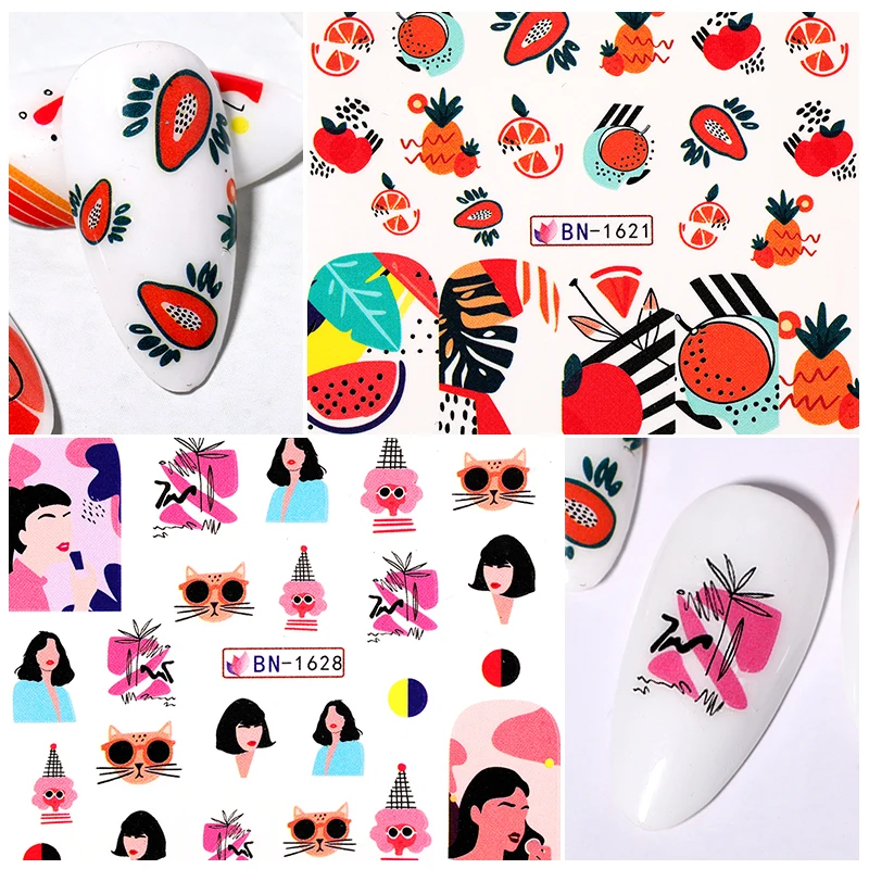 12 шт. Красочные абстрактные наклейки для ногтей наклейки Летняя серия фрукты цветок Геометрия наклейки для ногтей смешанный Маникюр слайдер