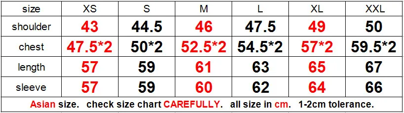 Пожалуйста, измерьте вашу куртку, как показано ниже: