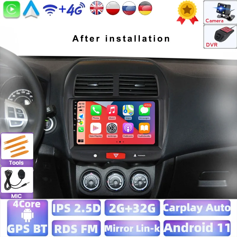 Автомобильная Мультимедийная система на Android, 2 Гб ОЗУ, 32 Гб ПЗУ, с GPS Навигатором, видеоплеером, для Mitsubishi ASX 1, C4 Peugeot 4008, 2010-2017, типоразмер 2 Din