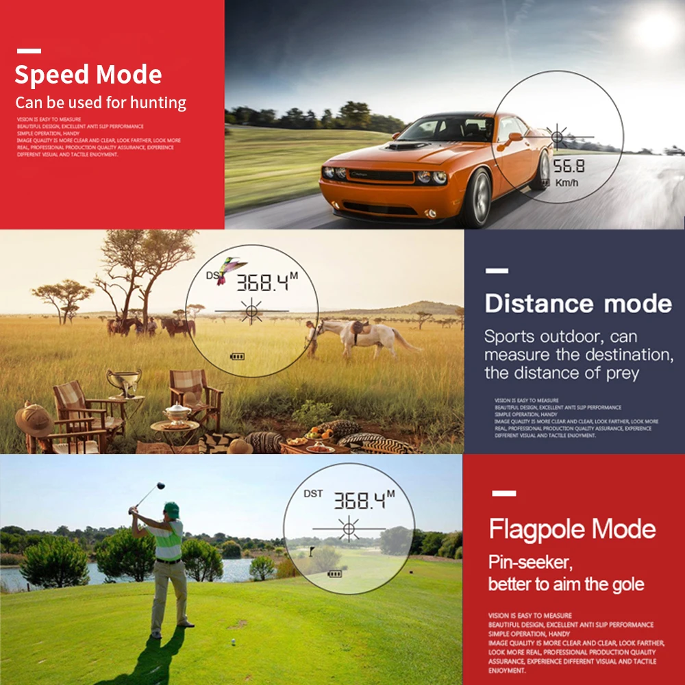 3.Многофункциональный:± 0,3 ~ 1,0 двор точность; 0,1 ~ 0,3 секунд Время измерения; Зарядка через USB функция; Фокусировка.