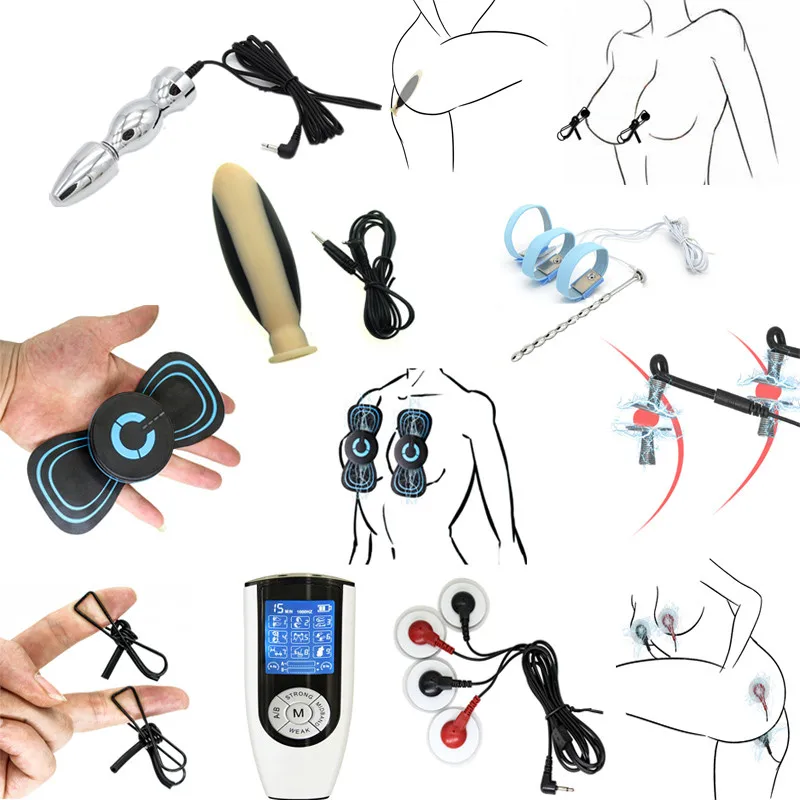 Электрическим током, Анальная пробка, электро Кольца для пениса, катетер, звуки, стимуляция груди, массажные зажимы для клитора, зажимы для сосков