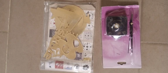 Просто распакован. Это своего рода креативный набор «сделай сам» с наклейками. У меня сложилось впечатление, что все часы за 1 раз были самоклеящимися. При движении вы должны привинтить его вниз, а затем приклеить фигурки. Отлично подходит для детской школы, но мне не понравилось. Я не связался с продавцом, потому что посылка некогда открылась у меня