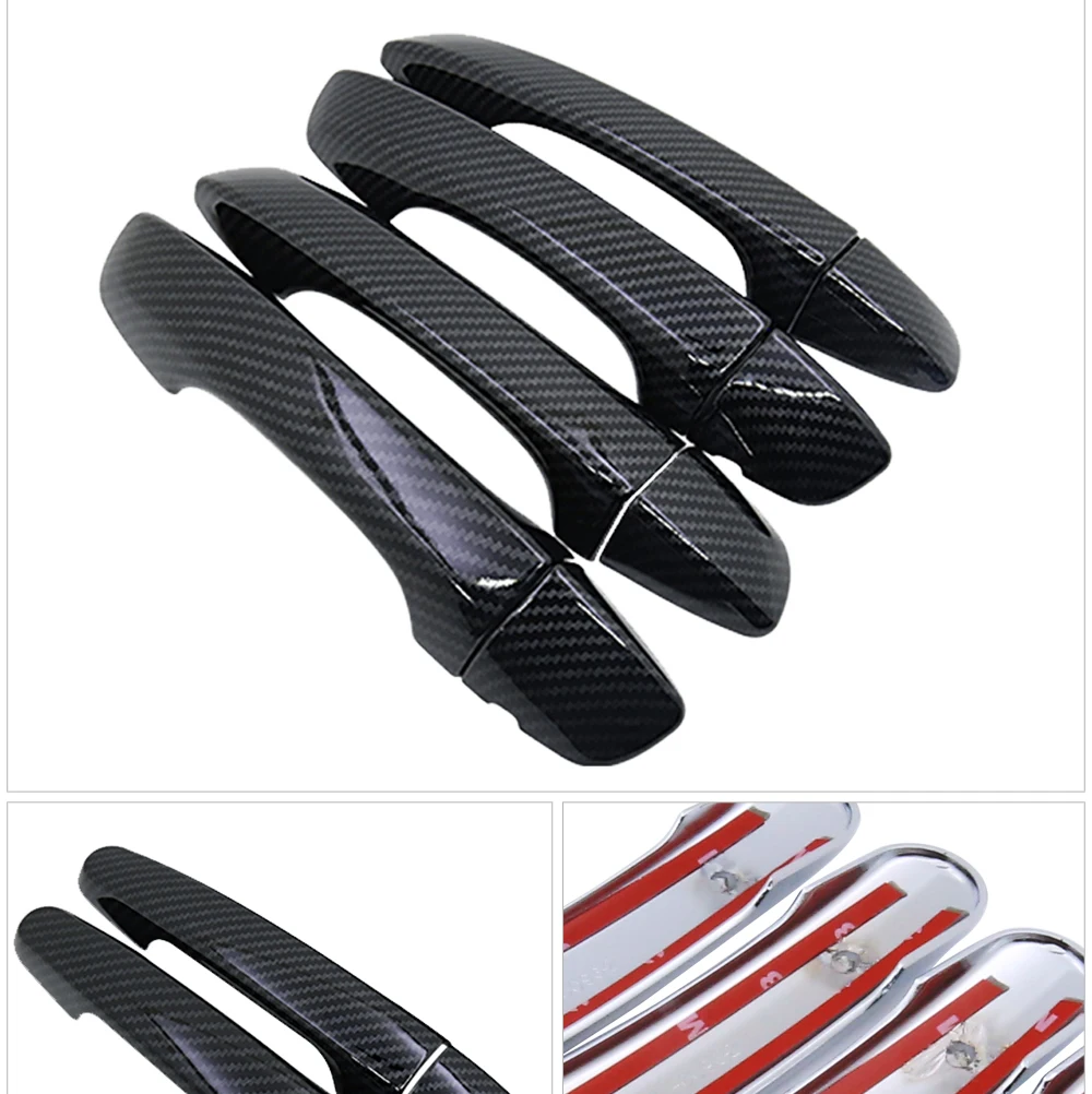 4 шт. глянцевый черный чехол из углеродного волокна для дверных руч...