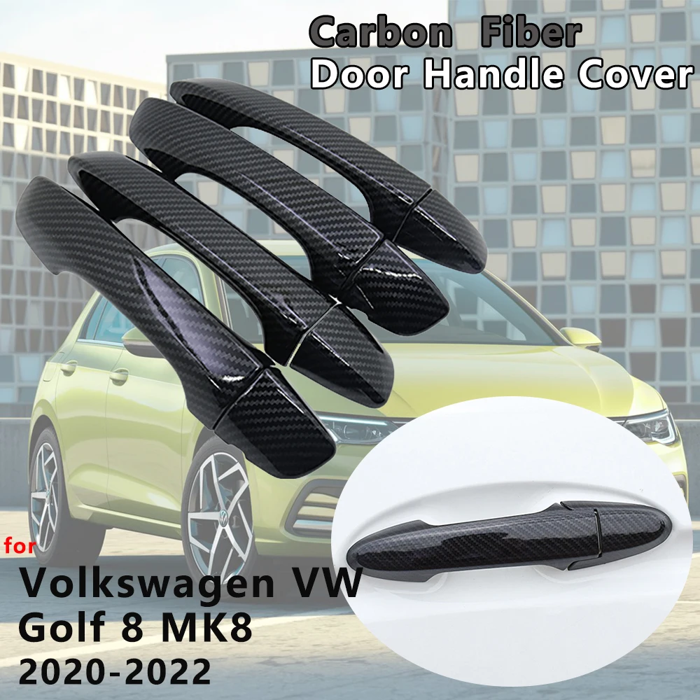 4 шт. внешний глянцевый черный чехол из углеродного волокна для дверных ручек, Накладка для автомобиля, аксессуары для Фольксваген Гольф 8 MK8 2020 2021