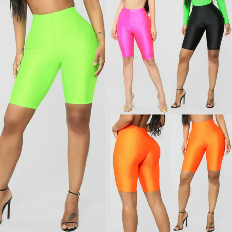 Женские байкерские шорты с высокой талией, спортивные летние обтягивающие однотонные облегающие велосипедные штаны для фитнеса