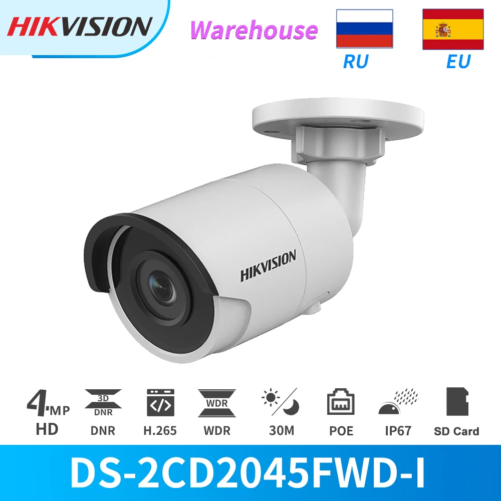 Hikvision IP Камера 4MP ИК PoE IP пуля DS-2CD2045FWD-I с разъемом для карт SD IP камера CCTV безопасности Камера Открытый Солнечный Darkfighter