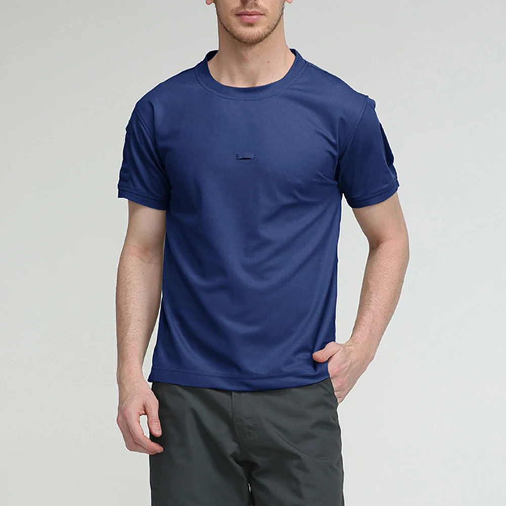 Однотонная Мужская дышащая быстросохнущая футболка с коротким рукавом и круглым вырезом, летний топ