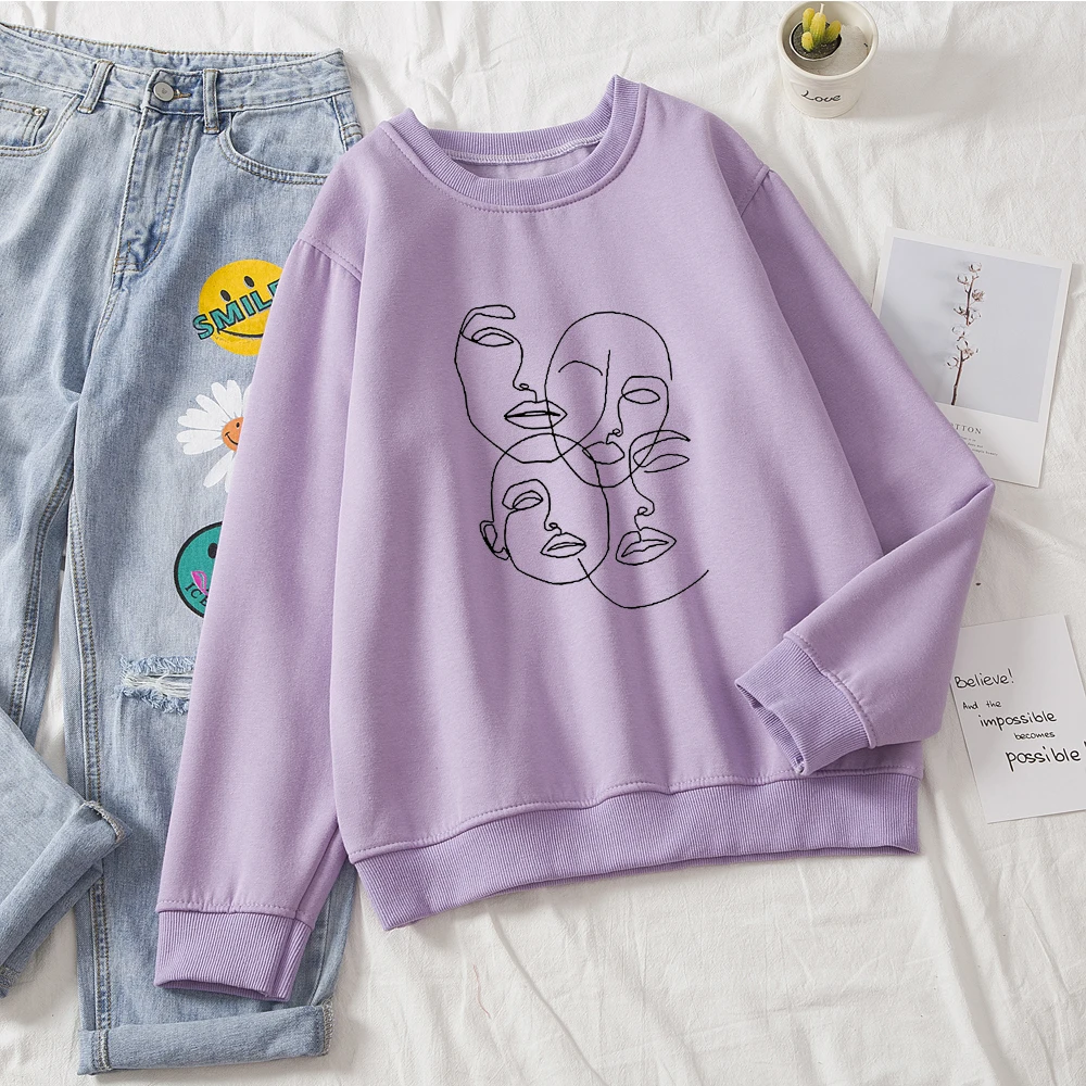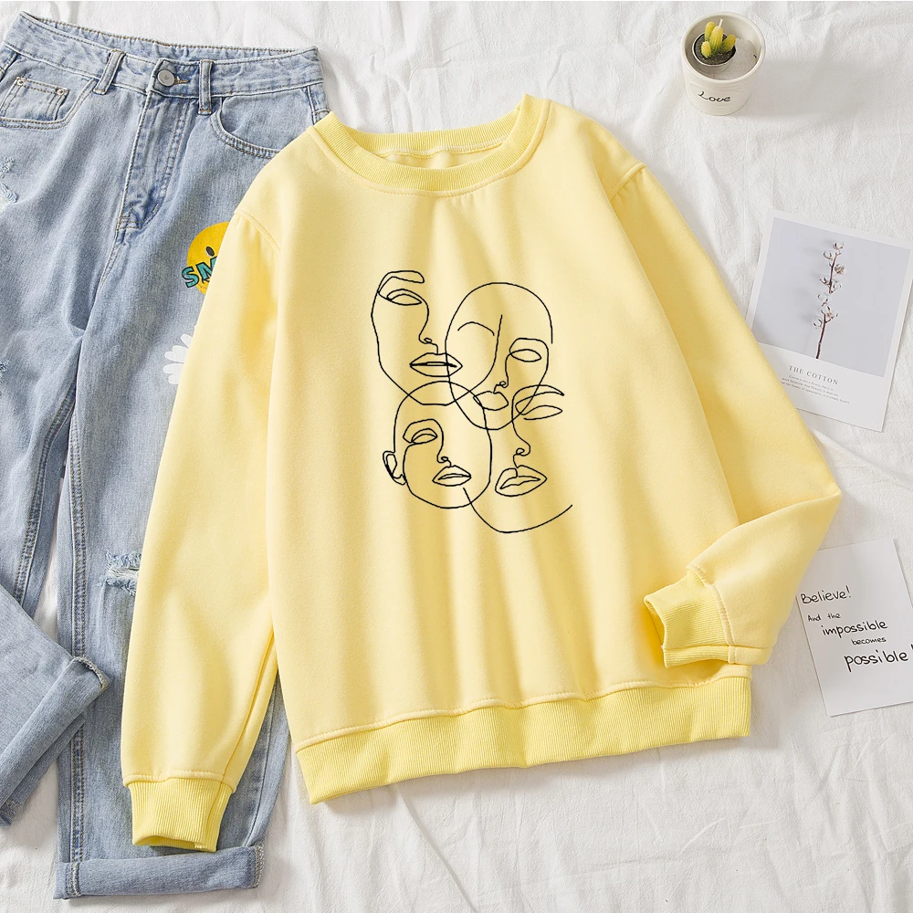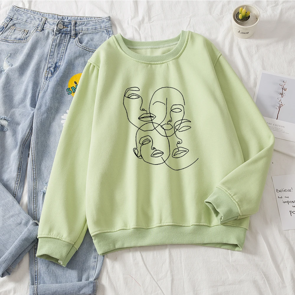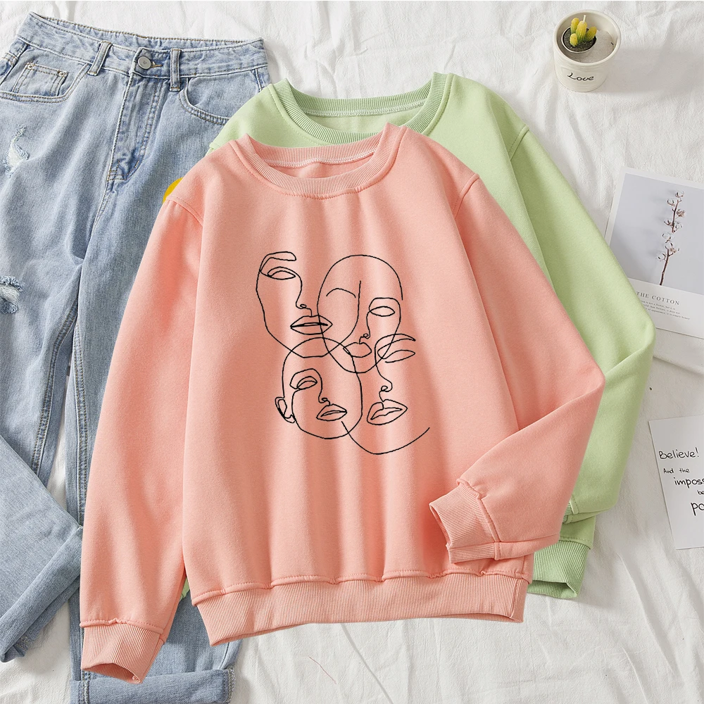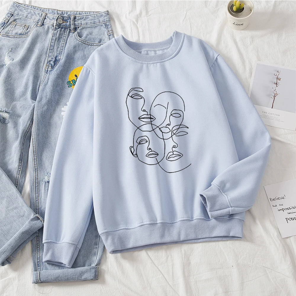 Худи Skuggnas женское в винтажном стиле, худи с абстрактным изображением линий лица, Готическая уличная одежда, свитшоты, пуловеры