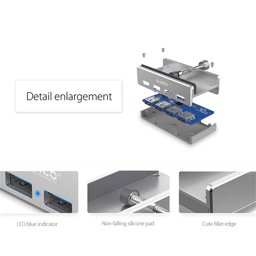 USB-концентратор MH4PU на 4 порта для монитора, настольный концентратор с клипсой, высокоскоростной разветвитель 3,0, концентратор с клипсой для ПК, ноутбука, диапазон зажимов 10-32 мм