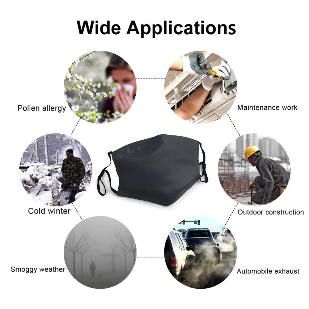 Подходит для большинства людей на открытом воздухе, для проживания или путешествий в районы с высоким уровнем загрязнения воздуха. Защита от газов, запахов, пыльцы, дымки, пыли, всех PM,PM2.5, PM0.3, дыма. Маски можно стирать, и фильтр можно заменить. Маски имеют отличный эффект фильтрации, потому что они имеют 5 слоев фильтра. Хлопковое волокно с активированным углем и фильтрующий материал, легко дышать. Лабораторная технология фильтрации фильтрует почти 100% загрязнения, газов, запахов, пыли, пыльцы, смога, PM2.5. Регулируемый переносица: в зависимости от Назального типа каждого человека, чтобы настроить, сделать маску и нос лучше подходят, увеличить эффект запечатывания маски, Избегайте дыхания, вызванного туманом очков. Эластичные и регулируемые ушные петли, подходят для большинства взрослых и детей, Размер можно регулировать, чтобы соответствовать большинству типов головы.