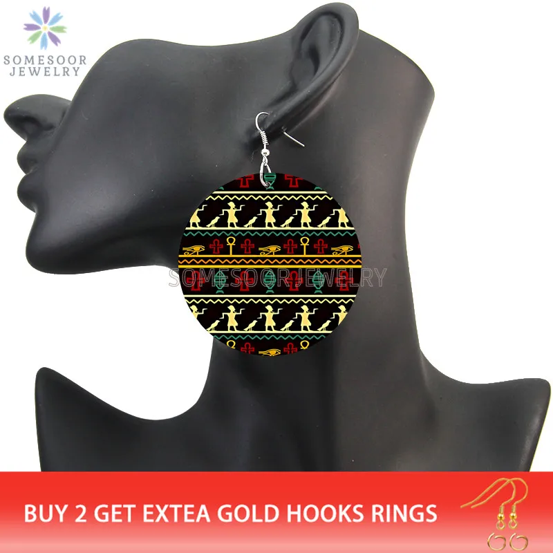 SOMESOOR лазерная гравировка афро деревянные висячие серьги Африкан...