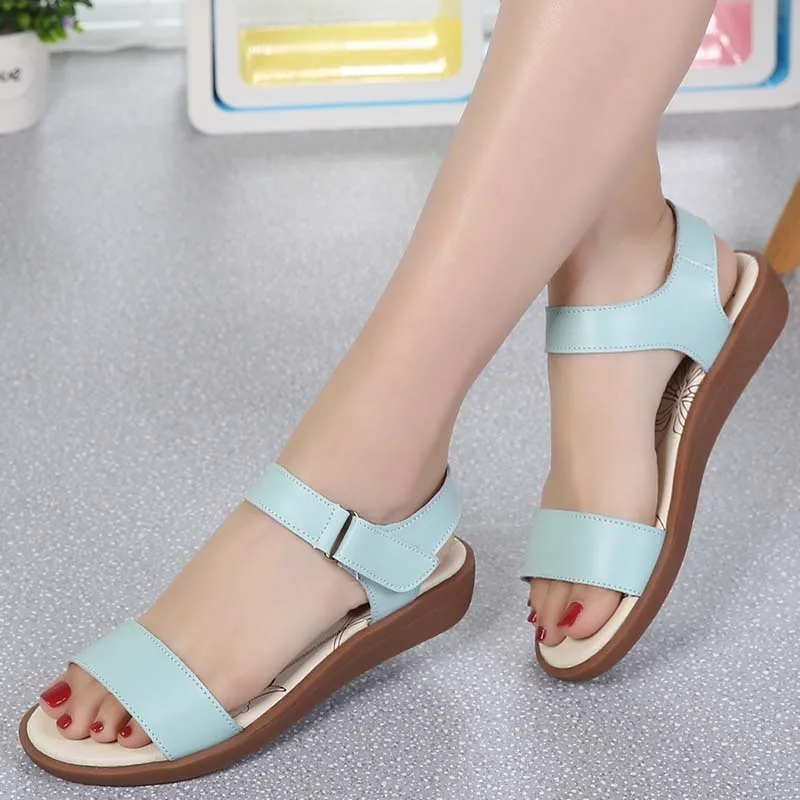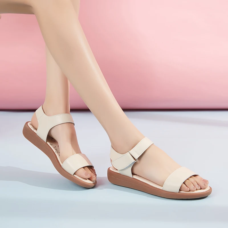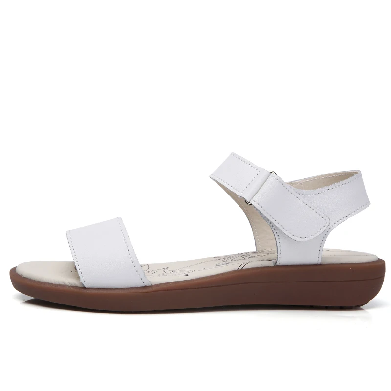 Летние женские сандалии удобные, повседневные белые кожаные туфли на плоской подошве с открытым носом и застежкой-ремешком женские сандалии; zapatos de mujer; Большие размеры; Женская обувь; Босоножки