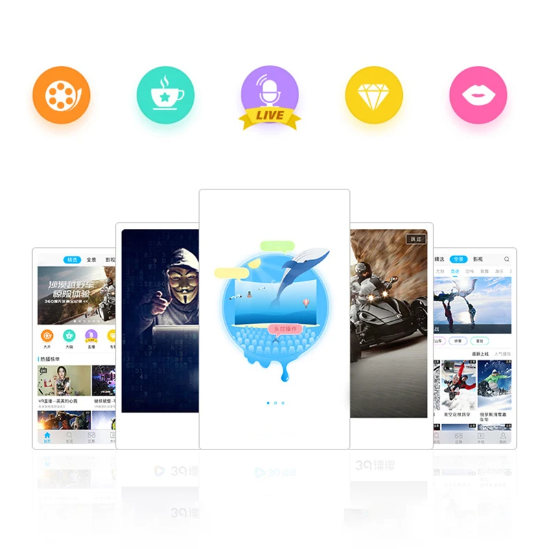 Особенности1.100% новый и высокое качество2. Подходит для просмотра фильмов3. Примечание: вам нужно найти приложение VR (см. Руководство по эксплуатации для других)