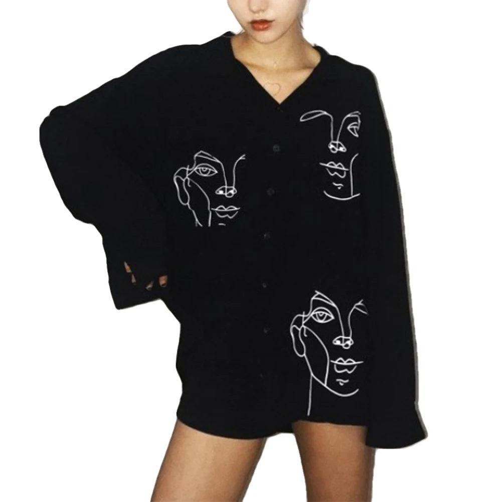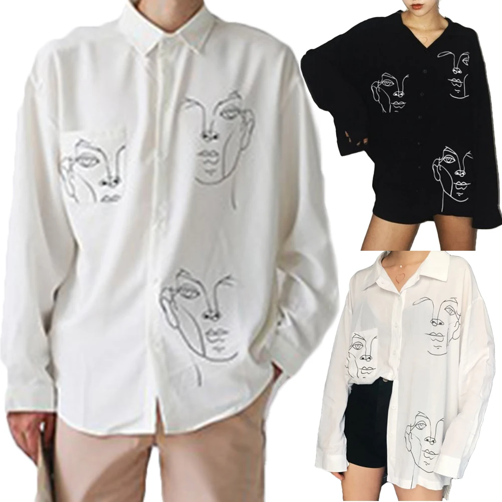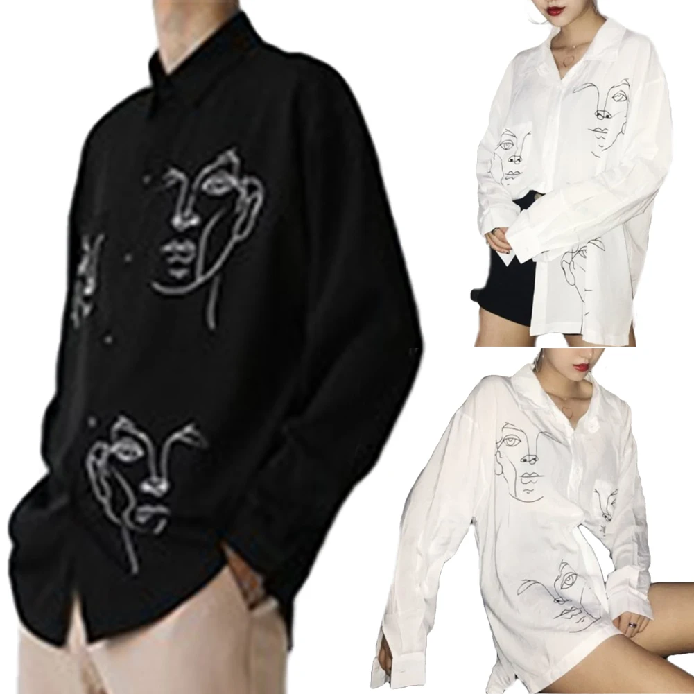 Женская блузка с длинным рукавом, черная или белая Свободная блузка с принтом лица и защитой от солнца, Однотонная рубашка, лето 2020
