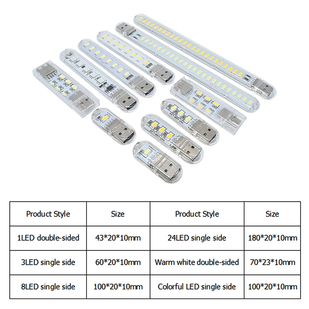 Светодиодсветильник лампа для чтения с USB, s 2-24 светодиодный, S SMD 5630, 5730 светодиодов, 5 В, вход питания, белый, 5000-6500K, теплый белый, 3000-3500K, USB-ночсветильник