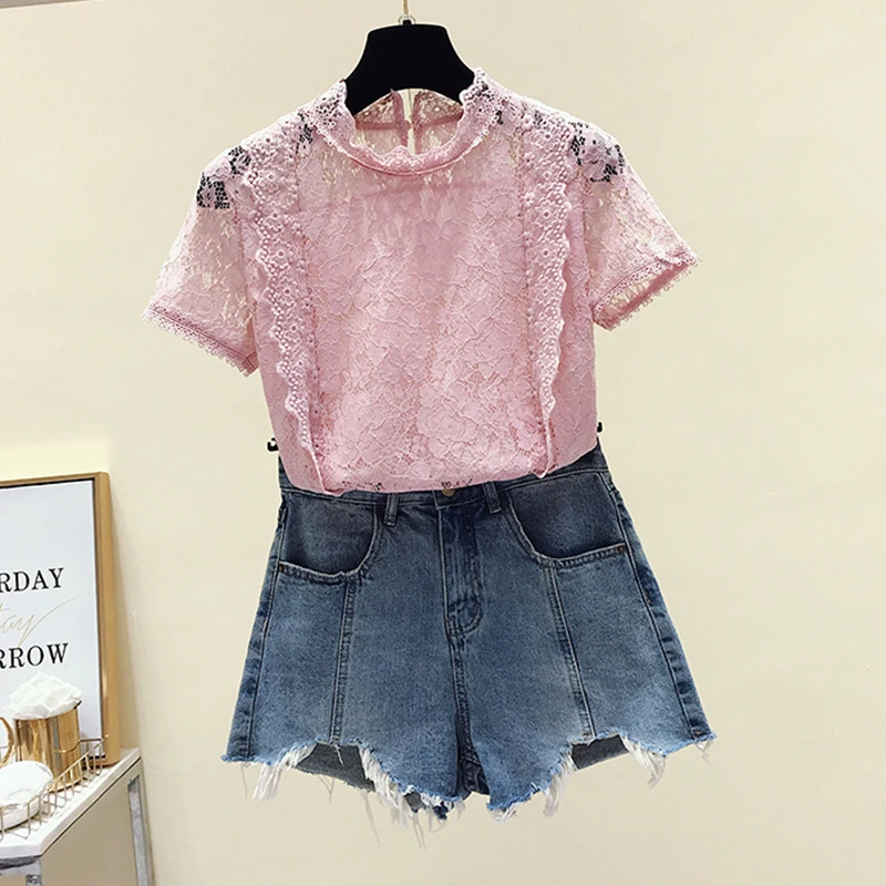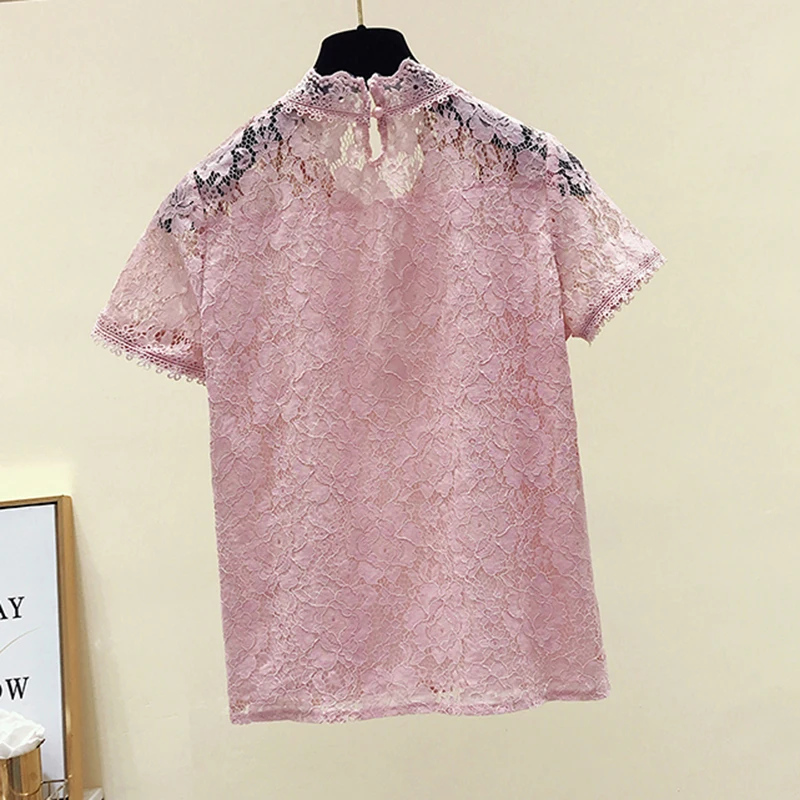 Корейская летняя рубашка, женская футболка, модная одежда, однотонные Женские топы и футболка 2022, Кружевные блузы, розовые, белые, черные